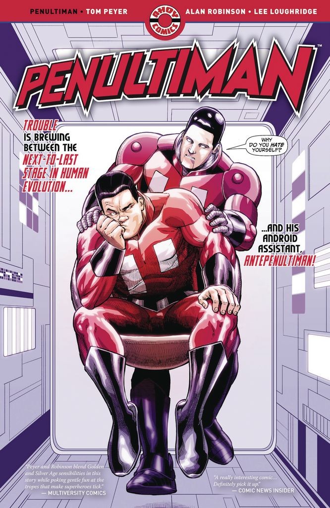 A modern superhero epic from the minds of Tom Peyer (The Wrong Earth) and Alan Robinson (Planet of the Nerds). Penultiman, The Next-To-Last-Stage In Human Evolution, is the greatest, best-looking, and most admired super-hero in the world-so how can he stop hating himself? Only his android understudy, Antepenultiman, may hold the answer.