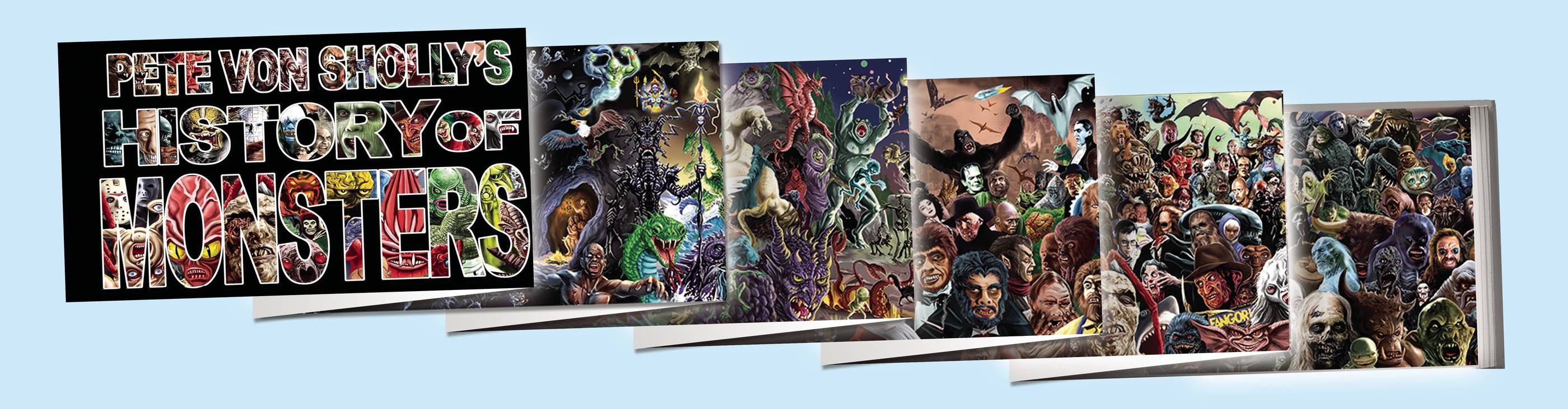 Pete Von Sholly is a writer, artist, director, and producer with a leaning toward the fantastic side of the arts. His storyboard work for TV shows and movies includes Darkman, The Mask, James and the Giant Peach, Mars Attacks!, Scooby Doo, The Real Ghostbusters, The Bride of Chucky, The Mist, and dozens more. Pete Von Sholly's History of Monsters is a glorious look at the phenomenon of monsters. This unprecedented illustrated pageant, presented as an accordion folded hardcover book, shows the actual history of monsters from man's earliest fears of the darkness beyond the fire to today's nightmares to see how these terrors found expression in myth, legend, and entertainment. But whatever the time or medium it is always in the unknown where the monsters lurk and fester and wait. Step into Pete Von Sholly's History of Monsters and experience the story as never before. 'This astounding work traces the evolution and proliferation of monsters through all human history and many cultures, with over 1,100 different examples intertwined into a colorful, informative and fascinating book on a scale that has never before been attempted. Take a guided tour through the dark side of legend, myth, superstition, fiction, animation, film, television and even cryptozoology, and meet every monster that has haunted your nightmares - and quite a few that haven't (yet) - in this fantastic panorama wrought with the skills of a mature master of the genre.' - Richard Milner, former editor of Natural History magazine and author of Charles R. Knight - The Artist Who Saw Through Time and Darwin's Universe.
