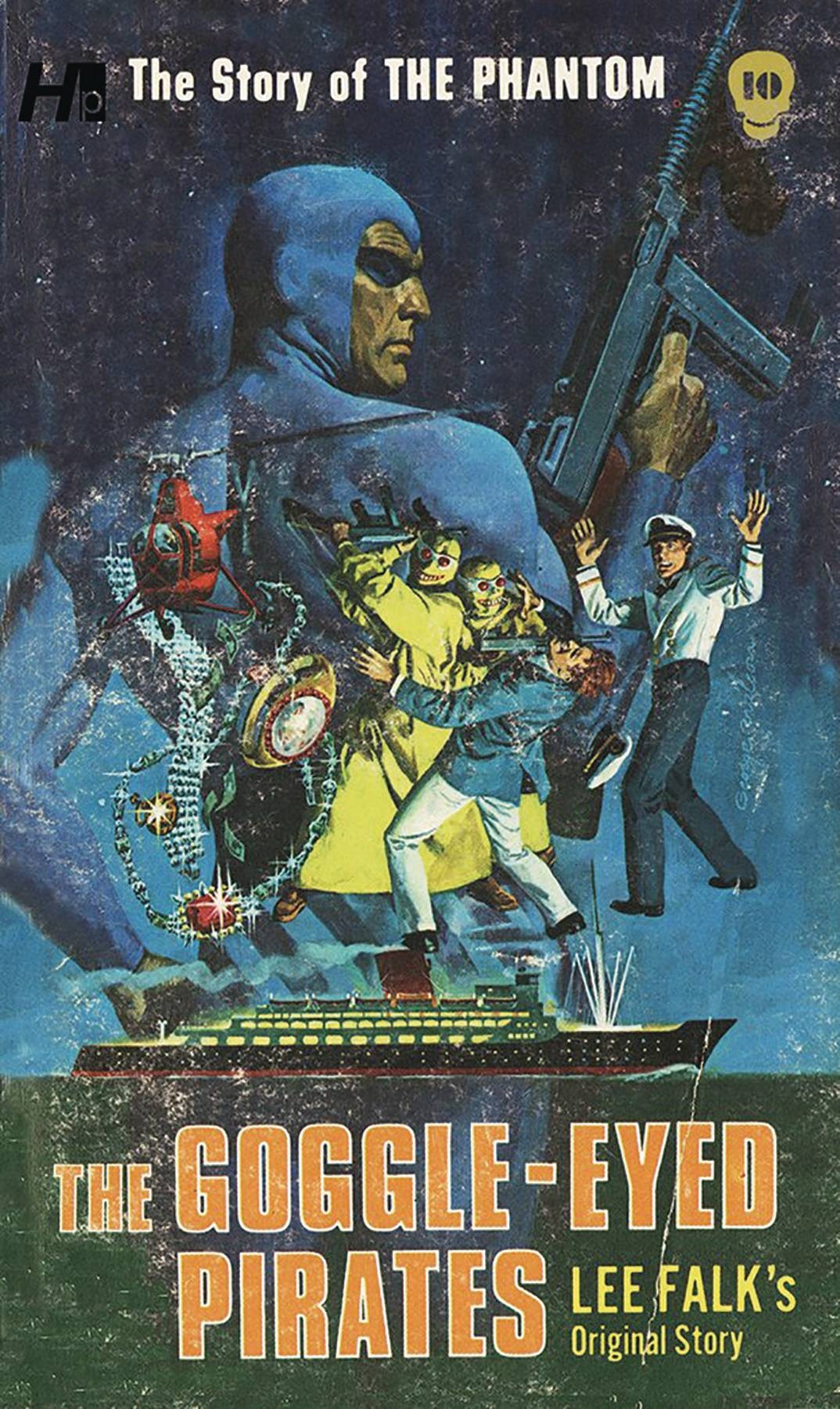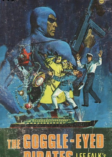 On a luxury liner in mid-ocean, a gang of weird pirates suddenly appears - as if out of nowhere. They rob the ship's vaults and passengers - then disappear just as mysteriously as they had come. How? Piracy - to the Phantom - is like a red cape to a bull. For centuries - since the first Phantom's father was killed by pirates - the Phantom has been the nemesis of pirates everywhere. Now, once more, the Phantom must meet that threat as he rallies to seek out and destroy the mysterious Goggle-Eyed Pirates (Google-Eyed Pirates on the cover and book spine).