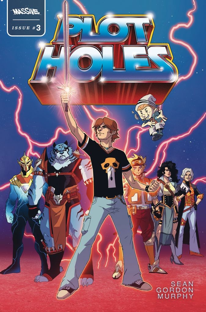 Josh Perez, cover artist on Transformers, IDW's Godzilla, Megaman: Master Mix, UDON's Street Fighter, and more, delivers an epic homage to Masters of the Universe. Superstar artist Sean Gordon Murphy, known for his groundbreaking series Batman: White Knight, delivers an all-new tale of world-hopping adventure. THE PLOT HOLES are a squad of fictional warriors who transport themselves into the pages of other books, using their unique skills to save the plots in order to stop them from being destroyed. And Cliff Inkslayer is their newest recruit, a comic creator who's just realized his world isn't real. Well, now we know who the real villain is, right? Wait, what makes a villain a villain? Why ARE there villains on this team? Not to mention Ed really seems to be hiding something. Are you ready to turn the page into the world of comic books, vampire revenge novels, and a secret third book? Time is running out, The Plot Holes' fate is looking grim, the surprises are plenty… this is getting exciting! It's time for someone to make a bold move before it's too late...