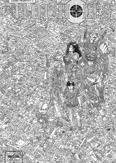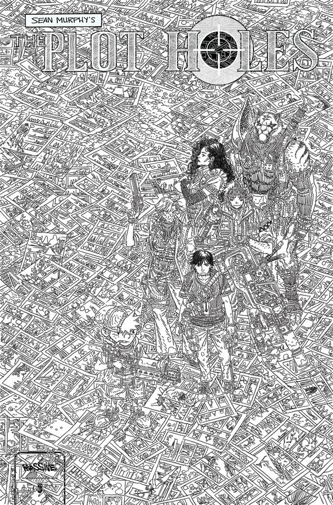 Cover by DC Comics artist Filya (Batman, Harley Quinn). From Sean Gordon Murphy, the fan-favorite comic creator behind Punk Rock Jesus, Tokyo Ghost, and the legendary DC miniseries, Batman: White Knight, comes an all-new tale of world-hopping adventure. THE PLOT HOLES are a squad of fictional warriors who transport themselves into the pages of other books, using their unique skills to save the plots in order to stop them from being destroyed. And Cliff Inkslayer is their newest recruit, a comic creator who's just realized his world isn't real. What more is there left to say? This is the FINALE for Plot Holes! The team races towards an end - but what kind of ending will it be? Try to keep up as we leap from book to book one last time, and trust me when I say this issue has it ALL. Here we go, let's find out if Cliff and the rest of the Plot Holes can save themselves, their world, and their friend.