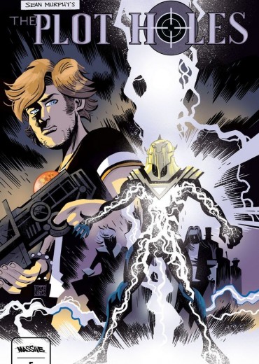 Cover by Victor Santos, best known for his work with Dark Horse on titles like Elixir, Furious, and He-Man and the Masters of the Universe and the best-selling series Until My Knuckles Bleed (Behemoth/Sumerian). From Sean Gordon Murphy, the fan-favorite comic creator behind Punk Rock Jesus, Tokyo Ghost, and the legendary DC miniseries, Batman: White Knight, comes an all-new tale of world-hopping adventure. THE PLOT HOLES are a squad of fictional warriors who transport themselves into the pages of other books, using their unique skills to save the plots in order to stop them from being destroyed. And Cliff Inkslayer is their newest recruit, a comic creator who's just realized his world isn't real. What more is there left to say? This is the FINALE for Plot Holes! The team races towards an end - but what kind of ending will it be? Try to keep up as we leap from book to book one last time, and trust me when I say this issue has it ALL. Here we go, let's find out if Cliff and the rest of the Plot Holes can save themselves, their world, and their friend.