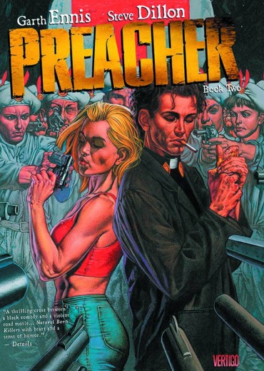 In this new trade paperback collecting PREACHER #13-26, Jesse Custer, his girlfriend Tulip and their vampire friend Cassidy head west to a party of Babylonian proportions. Then Jesse flies to France to rescue Cassidy from the clutches of religious fanatics. His search leads him into battle against the forces of the mysterious organization known as The Grail.
