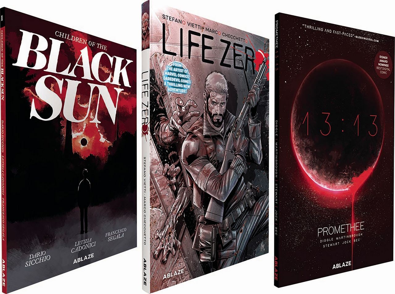 ABLAZE is shining the spotlight on the wide variety of genres and fantastic works within our catalogue! Our Spotlight on Science Fiction includes three comic titles - Life Zero, Promethee 13:13, and Children of the Black Sun Vol. 1 - bundled together under a specially discounted price. In Life Zero: As a mysterious cloud passes through the world's population centers, people die…then they return to life as shambling, ravenous monsters. When a team is sent into the fray to break Captain Derek Shako from prison, they soon discover that he has his own agenda that takes precedence over any other grand schemes. The completion of any mission, however, requires escape from the beleaguered, infected city… In Promethee 13:13: Darla Clemenceau has been plagued by apocalyptic visions ever since she was abducted by a UFO as a child. Now, she's ready to put it all behind her and move on with her life. But what if it's all true? A dangerous cult militia is prepping for the end of the world, and they see Darla as the key to their survival... In Children of the Black Sun: Over the years, a black sun has risen twice, dark dawn whose rays have done terrible things to people's minds, driving them to all sorts of horror. Twelve years have passed since the last time, and the world still fears the return of that inexplicable phenomenon. But fear is not the only legacy of those terrible days. All the women who got pregnant under the influence of the black sun have given birth to babies with some... peculiarities. White hair, ashy skin, abnormal proportions, and eyes as red as fire: the Children of the Black Sun.
