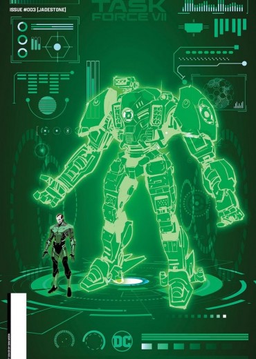 'After capturing and absorbing the powers from the JSA, Jadestone is compromised by Green Lantern Alan Scott's willpower. Suddenly faced with the concept of free will, does JADESTONE continue to execute Waller's orders or have a change of heart? Meanwhile the remaining JSA members attempt a rescue mission to retrieve their teammates and escape to the Tower of Fate!'