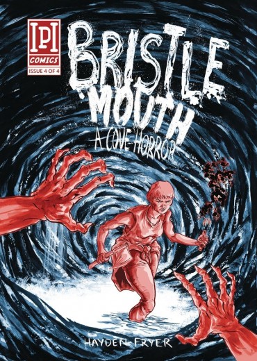 Final Chapter. Amelia has the supreme terrifying confrontation and ordeal with the body-horror-inducing Bristlemouth menace of The Cove, and faces ultimate choices and the greatest of anguishes. Hayden Fryer's dark, beautiful grey-tone wash storytelling takes the reader into an intimate experience with horror.