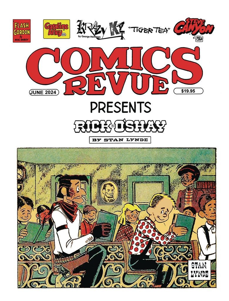 America's longest-running magazine of classic comics now has twice as many pages of strips as the earlier version, on better paper, and features 8 pages of full-color comic strips including Flash Gordon by Harry Harrison, Gasoline Alley by Dick Moores, Alley Oop by V. T. Hamlin, The Phantom by Lee Falk and Sy Barry, Steve Canyon by Milton Caniff, and Casey Ruggles by Warren Tufts, plus stories in black and white including Rick O'Shay by Stan Lynde, Mandrake the Magician by Lee Falk and Ray Moore, Krazy Kat by George Herriman, Buz Sawyer by Roy Crane, and more.