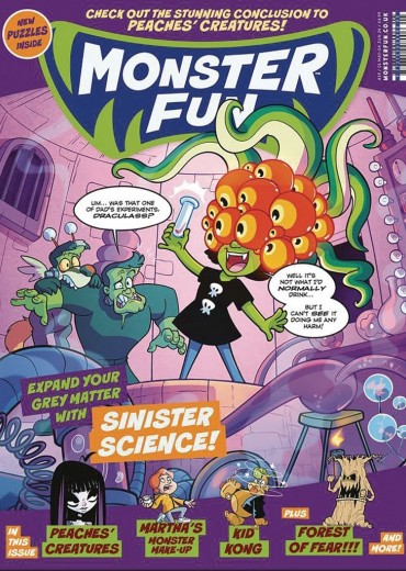 Mirthful May is here and so is the Monster Fun Sinister Science issue! Prepare for your mind to be blown as our roster of not-so-bright, beastly beings expriment with things best left to the experts! Gums, Kid Kong, Hell's Angel, Witch Vs. Warlock, Martha's Monster Make-Up and Space Invaded! bring the winning, comedic formula, while Rex Power provides some explosive action! Adventure is also the order of the day in Peaches' Creatures, which reaches its dramatic conclusion. And finally, we take you on a visit to the Forest of Fear! Enter if you dare!
