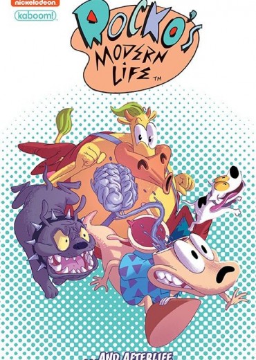 Modern life has never been easy for Rocko, Filburt, and Heffer. But it gets even harder when Rocko's dog Spunky becomes an overnight internet sensation. Desperate times call for desperate measures and Rocko will do whatever it takes to win back his best bud's affection, even if it means breaking the law or facing childhood bullies at his high school reunion. In Rocko's Modern Afterlife, in O-town's dystopian future, everyone's cell phone is glued to their hands, Heffer makes a living streaming video games online, and the latest app lets you avoid all contact with everyone else without even looking up from your gadget! But even in the midst of this techno-utopia, there's something not quite right with Rocko's fellow citizens. While Rocko takes two weeks to chill and unplug from technology, the rest of the town seems to be going mad. When danger comes knocking at his door, the newly zen wallaby will have to choose whether to stay barricaded within his home or venture forth into a wasteland of mindless citizens. Don't miss out on the collected adventures of Rocko, Spunky, Heffer, and Filburt as writer Ryan Ferrier (Mighty Morphin Power Rangers, Teenage Mutant Ninja Turtles), artist Ian McGinty (Adventure Time, Welcome to Showside), Anthony Burch (Borderlands 2) and artist Mattia Di Meo (Regular Show) bring the Rocko's Modern Life family back to life! Collects Rocko's Modern Life #1-8 and Rocko's Modern Afterlife #1-4.