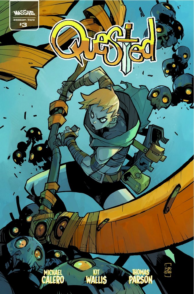 French artist Ludo Lullabi, best known for his work on the Battle Chasers comics, joins Quested with this action-packed cover. The misadventures continue in a brand new season of Quested by writers Michael Calero (Alpha Betas, Sumerian's American Psycho) and Thomas Parson, with art by Kit Wallis (Good Boy, Mr.Easta). 'For Whom the Jell Tolls.' Nightmares come in all shapes and sizes, but in the Underbaun they are Jellii filled. Jinx and Gil continue their quest through the afterworld, stumbling upon the dreaded Jellii Kingdom. Jinx is quickly recognized as public enemy number one and only his quick thinking and golden tongue will save him from a fate worse than the jelliis he carelessly slayed in quests past.
