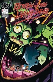 The Trioxin's flowing and the body count is rising! Return of the Living Dead is back, baby, with a brain eating, skateboard thrashing, roller coaster riding, new comic story rocking everything that made the 1980's so awesome! You thought the original Tarman gave you nightmares? How about we kick it up a notch and introduce readers to 'Tarwoman' - and, oh yeah, she brought friends! This ain't your momma's living dead! Trapped, afraid, cut off, and running for their lives in an amusement park island getaway overnight! Two groups of teens have to figure out a way to survive as the dead are rising around them, and they're not looking for cotton candy! They want BRAINS - the other fright meat! It's zombie horror done right with American Mythology's Return of the Living Dead - 'Party Time!'