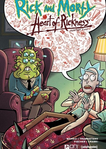 Never fear because fear fears fear itself as the all-new descent into Rick's HEART OF DARKNESS from writer Michael Moreci (Barbaric) and artist Priscilla Tramontano (Rise of TMNT)! Rick and the kids escaped the death pit but disagree on their next move. Why run back to the comfort of civilization, cell phones, and TV when you can stay on the random barbarian planet and fight with an alternate version of yourself to prove who's the biggest and baddest? On the spa planet, Beth and Jerry hunt for nachos but instead discover the seedy truth behind their relaxing vacation.