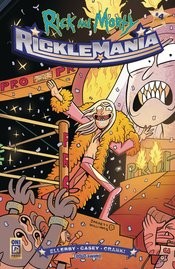 It's the final showdown. It's a family feud of epic proportions. It's the finale of the explosive, action-packed series from Marc Ellerby (Doctor Who)! It's . . . Rick and Morty: Ricklemania #4, sucka! Fueled by money, fame, and a wealth of merchandising opportunities, Rick Sanchez turns on his own grandchildren. As Morty and Summer take on their grandfather's wrestling wits to try to snap Rick out of his ego trip, Jerry takes a bold but ill-advised stance against his new employer in an attempt to break free from his contractual obligations. Can Morty and Summer save Rick from himself? Can Jerry escape from his new contract? And who is this shadowy figure from Rick's past?!