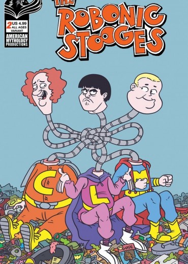 Saturday morning cartoons are back! The Robonic Stooges leap from the TV screen to comics with another slapstick issue! In 'Fantastic Fools' the Robonic Stooges attempt to stop a meteor hurtling toward Earth only to awaken the MoleShemp! And in 'The Island of DrEams' the boys win a vacation to a tropic island. Unfortunately instead of a vacation they end up the pawns of a strangely poetic mad scientist! This issue is crammed with awesome extras too - all taking you back to the days watching cartoons with your favorite bowl of cereal. The Robonic Stooges #2 Fantastic Fools is available with three covers - Main by Eric Shanower, Variant by Dean Rankine, and a 350 copy Limited Edition Black & White collector's variant!