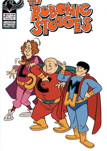 The Saturday Morning Cartoon Revival Continues! The Robonic Stooges are back and fans have responded with a resounding Nyuk Nyuk to the Nyuk! They've already saved the planet from the world-devouring Oreganose, and the subterranean terror known as MoleShemp! But now The Boys must face their greatest challenge yet when they're thrust into a pastry-fueled post-apocalyptic future filled with a threat so dark, so vile, its name is only mentioned in whispers - The Shempinels - featured in 'Days of Dunderheads Past' and an added special behind the scenes training tale in 'Dangerously Stupid'! The Robonic Stooges #2 Fantastic Fools is available with three covers - Main by Eric Shanower, Variant by *, and a 350 copy Limited Edition Black & White collector's variant!