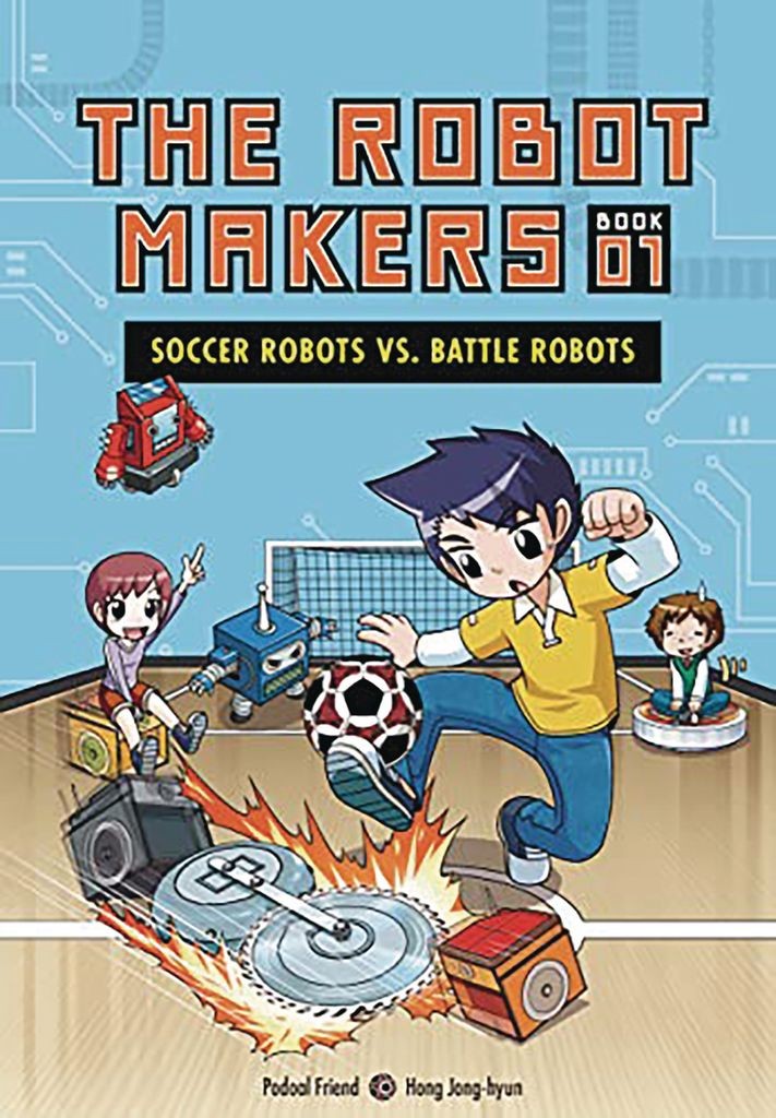 A graphic novel series that introduces readers to the STEM concepts that make robotics possible-and depicts a series of exciting competitions! La Ion is happiest when he's on the soccer field with friends. So when he transfers to a new school, he's excited to see it has a soccer club. But the kids he meets aren't kicking a ball around-they're controlling soccer robots! Soon La Ion is stuck in the middle of a rivalry between the robot-soccer club and its battle-robot rivals. Soccer Robots vs. Battle Robots kicks off the Robot Makers manhwa series with an introduction to robotics history, including key concepts, famous figures, power sources, and more.