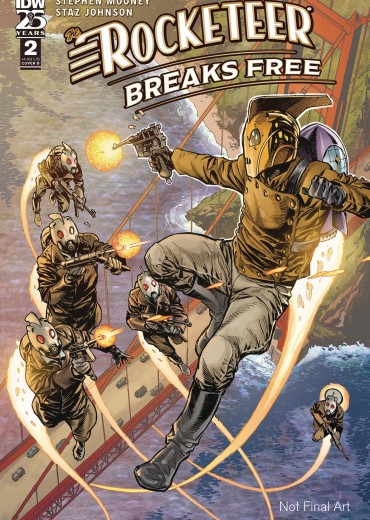 Cliff's intentions were pure this time-they really were. All he wanted to do was accompany his gal, Betty, to the City by the Bay to shoot her new movie and keep himself outta trouble. Well, trouble had other ideas! The Rocketeer finds himself up against three Nazi U-Boats, which have launched acovert surprise attack on the Golden Gate Bridge. And what could they possibly want with the Rock, a.k.a. Alcatraz? And why is the Rocketeer at the very center of their plans?!