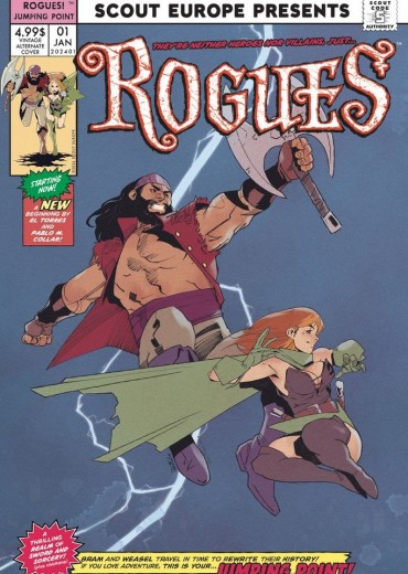 Introducing Scout Europe! This new subimprint focuses on European creators and formatting! New ongoing series! Meet Bram and Weasel, a pair of cunning thieves from the mythical city of Gerada. When fate takes an unexpected turn, they're thrust into a daring quest across time itself to reclaim their own souls and rewrite their story. This sword and sorcery comic weaves magic, heists, and chickens… into a can't-miss epic that is a perfect starting point for newcomers. Hence, Jumping Point. Ha.