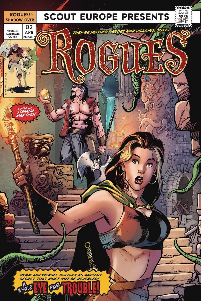 Are you ready to witness the Rogues battling against Lovecraftian creatures? Bram and Weasel are back in the mythical city of Gerada with a strange artifact-The Eye of Byatis! And they REALLY want to sell that Eye before it rots! What our héroes don't suspect is that they are about to bring doom down on the city-the arrival of a cosmic horror sent by the Elder Ones!