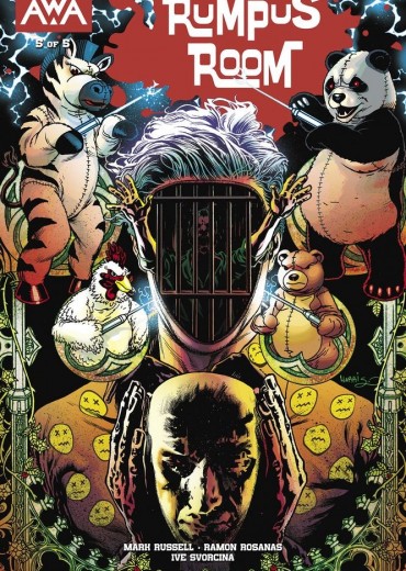 Don't miss the concluding chapter of Mark Russell's satirical horror thriller! As eccentric tech billionaire Bob Schrunk publicly shows off his bizarre art gallery on an internet talk show, the prisoners in his 'Rumpus Room' hatch one last plan to free themselves. Can Detective Hernandez lead them out of the endless, deadly cycle of voting on who will be the next to be crushed into Schrunk's special skin cream?
