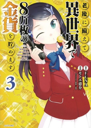 One day Mitsuha falls off a cliff and is tranported to a medievel Europe type world! After a near death encounter with a pack of wolves, she then realizes that she's able to transport between two worlds- this one and her own. Taking advantage of this ability, Mitsuha decides to live in both worlds and calculates that she'll need 80,000 gold coins to be able to retire! Mitsuha now has to come up with different ways to collect her gold coins!