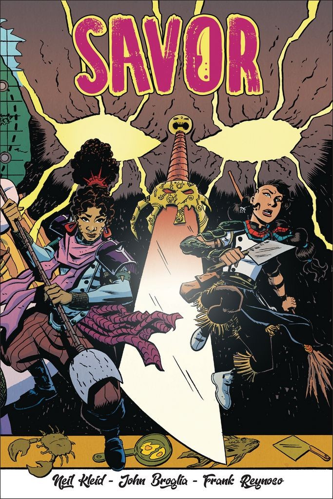 Discovering a band of demon cooks has captured her island home, warrior chef Savor Batonnet must undertake her very first quest as a newly minted hero! But being called a 'hero' and possessing a handful of skills all the ingredients Savor needs to face five deadly restaurants, build the ultimate knife, save both her parents and the woman she loves? By creators Neil Kleid (Brownsville, Kings and Canvas, Powers: The Secret History of Deena Pilgrim), John Broglia (God Complex, Zombie-Sama) and Frank Reynoso (Kings and Canvas, The Sweetness). o For fans of Legend of Zelda, Top Chef, Disney films and cooking shows-or warrior chefs of all ages! o A new young-adult world à la Avatar: The Last Airbender. o A bite-sized graphic novel about finding your way, food fighting, and adventure!