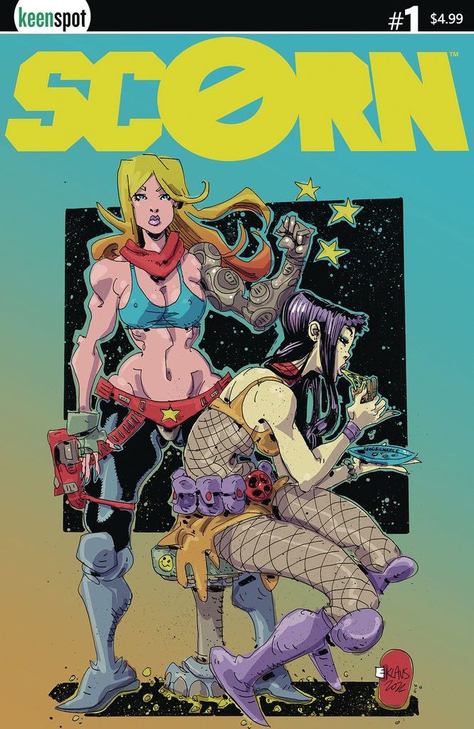 1990s 'bad girl' character Scorn returns to comics after a quarter-century in a boldly reimagined new series! On a backwards planet guided by an ancient rulebook, teenage Princess Kalee assumed those rules didn't apply to royalty like her. But after the ruling council violates her privacy and discover she's gay (a big no-no!), Kalee only escapes execution by being banished from her home planet forever. Now living under the alias Scorn and exploring the galaxy along with fellow outcast Chez, she tries to find happiness until an evil act forces Scorn to return to the place she once called home. Now it's up to this former princess to teach her world that stupid rules were meant to be broken.