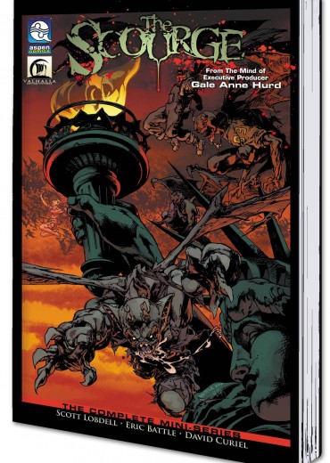 They are taking over� From the innovative mind of acclaimed movie producer Gale Anne Hurd, and written by superstar writer and visionary Scott Lobdell, comes THE SCOURGE! The skies of New York City are no longer safe. In mere hours, the greatest metropolis on the planet is turned into an island of horrors, as a virus rapidly advances throughout the city transforming its citizens into savage, bloodthirsty gargoyles!! Amidst the outbreak, one man, NYPD SWAT officer John Griffin finds himself as the last remaining hope to prevent the cataclysmic spread of the virus from the island, locating his estranged son within the chaos, and saving the city itself from complete annihilation! Collecting together the long sold-out series for the very first time, The Scourge trade paperback vol. 1 includes a complete cover gallery, special guest foreward and a whole lot more!
