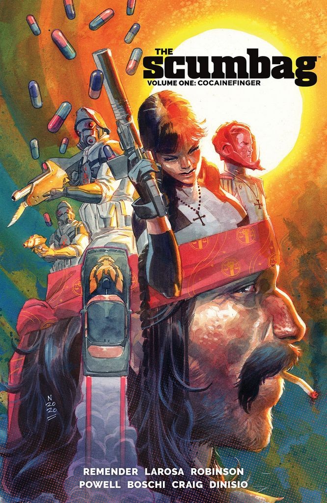 The fate of the world rests in the hands of the worst person on it! From New York Times best selling writer RICK REMENDER and a murderers' row of all-star artistic talent, comes the story of Ernie Ray Clementine - a profane, illiterate, drug-addicted biker with a fifth-grade education accidentally received a power-imbuing serum making him the world's most powerful super spy. He is a relic of a bygone era, the living embodiment of sex, drugs, and rock and roll - so, this doesn't make things easy for the spy organization that needs his help as they bribe, cajole, and manipulate him to choose between his own self-interests and doing what's right. Collects THE SCUMBAG #1-5.