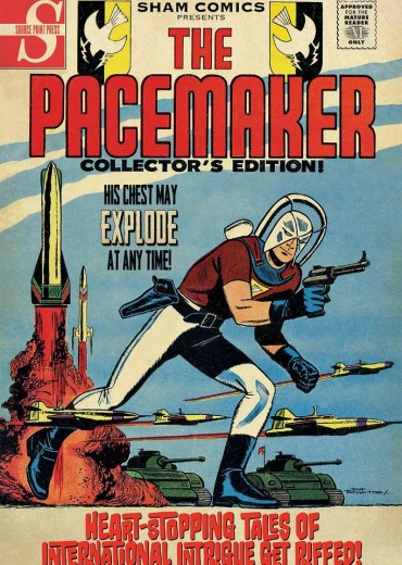 Heart-stopping tales of international intrigue get riffed. Join the adventures of broken-down, has-been CIA spook Chuck Upton as he gets a second chance. Left for dead during a failed black ops mission, his body was completely reconstructed using alien technology. By day he poses as a mild mannered NATO envoy, traveling the world ironing out tricky diplomatic conflicts. But when diplomacy fails, he dons his preposterous costume and outlandish titanium helmet and solves those conflicts with extreme violence as The Pacemaker. The stress usually triggers a heart attack mid-fight, as his alien technology usually fails him, but he blows up lots of things in the process.