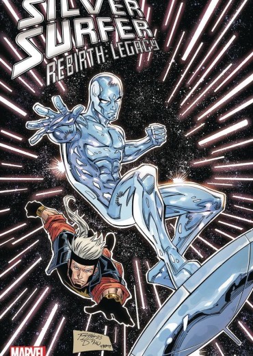 The Sentinel of the Spaceways has taken the son of Captain Mar-Vell, Genis, under his wing, but even the Power Cosmic can't replace the love of a father! The Surfer knows something that might just be able to soothe a broken heart, but is it worth a clash with THE INFINITY WATCH? Beloved creators Ron Marz and Ron Lim return to a story from their celebrated run on Silver Surfer and they're not the only time travelers... Rated T+