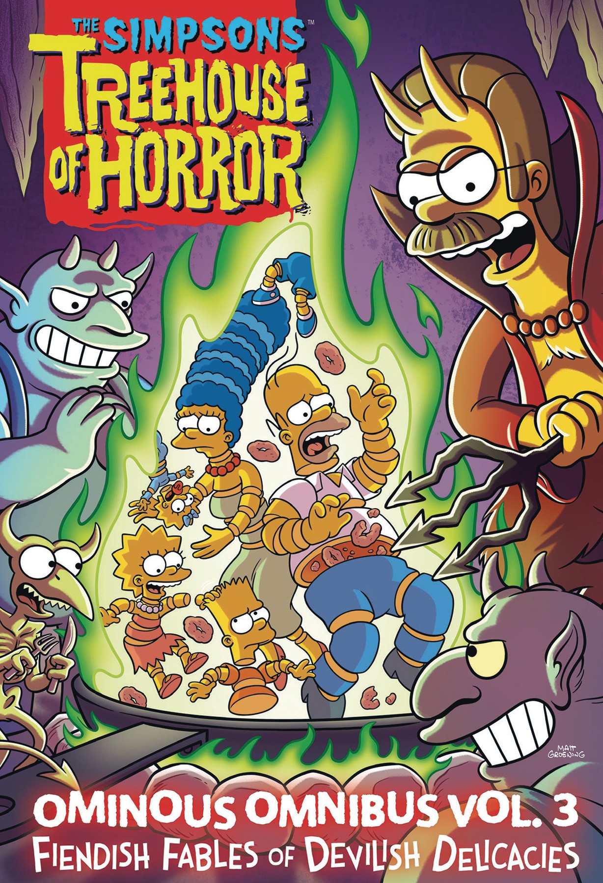 The Treehouse of Horror started as an annual Halloween tradition on The Simpsons, beginning during the second season in 1990. In 1995, the first of 23 comics were produced, with all-new stories written and illustrated by some of the biggest names in comics, including Peter Bagge, Ian Boothby, Jeffrey Brown, Gene Colan, Jordan Crane, Dan DeCarlo, Paul Dini, Garth Ennis, Sammy Harkham, Gilbert Hernandez, Arie Kaplan, Peter Kuper, Carol Lay, Art Lyon, Bill Morrison, Phil Noto, and more. Collected for the first time in a deluxe hardcover slipcase with a glow-in-the-dark die-cut cover, these award-winning comics place the world's most beloved animated family in exciting horror, science-fiction, and supernatural settings, making this series the perfect gift for the Halloween season and Simpsons fans of all ages. This third volume in the trilogy is the perfect addition to any Simpsons collection. The volume also includes an introduction by Marge Simpson.