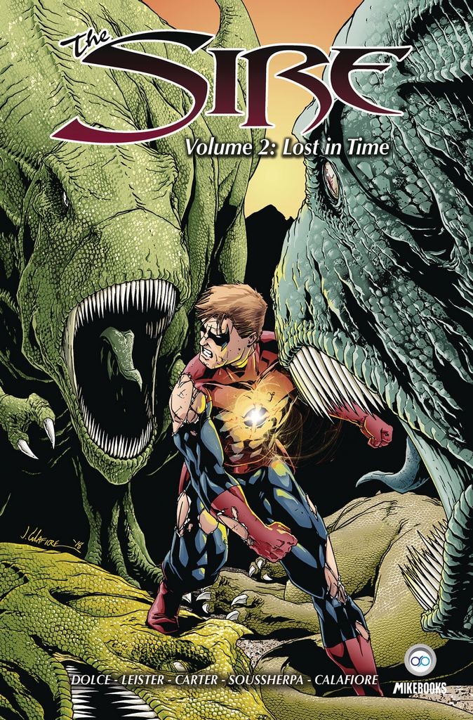 Donald Wright is The Sire: a superhero forced by his own costume to fight evil... and he really, really doesn't want to be. In this collection, the Sire takes on a super-powered mob, a West Coast assasin and dinosaurs as he goes spiraling through time! Can he figure out how to get home before he's lost forever? With a Featuring a cover by Jim Calafiore and art by Talent Caldwell, Daniel Leister and more, this trade collects issues #1-5 and features all-new bonus material!