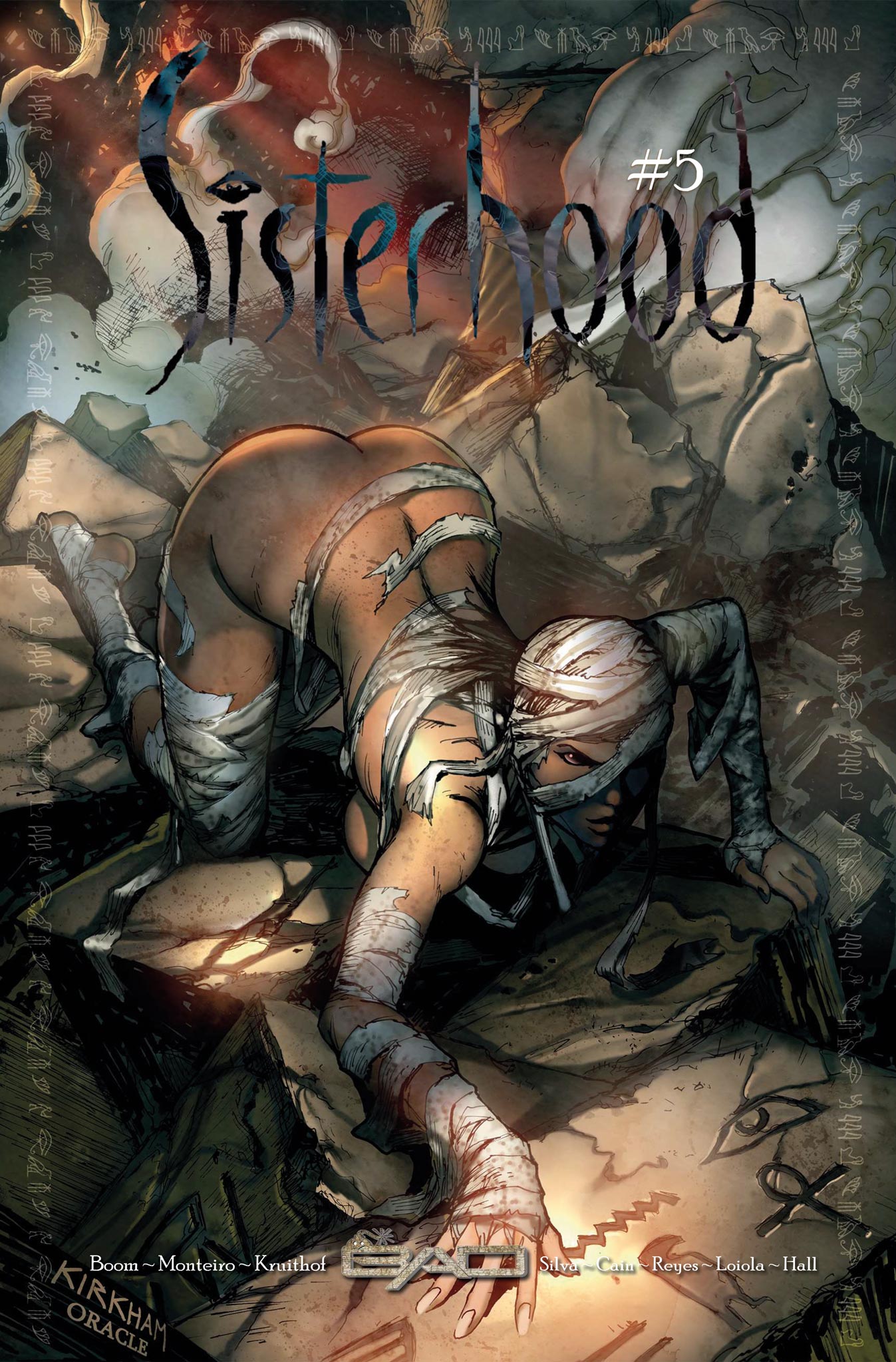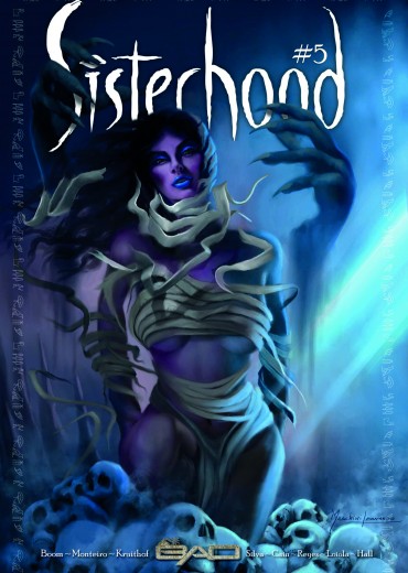 Verwacht april Sisterhood 5 is verkrijgbaar in verschillende alternative covers. U ontvangt het album met 1 van de drie bovenstaande covers. Bevat 4 korte Verhalen Naar een idee van Richard Boom Tekst: Rodreigo Monteiro, Richard Boom, Victor Kruithof. Tekeningen: Carlos Ramos, Alfredo Reyes, Richard Cain. Engelstalig Softcover 36 blz. Deze keer komt de Sisterhood draken, geesten en... zeemeerminnen tegen! Het Amazone-regenwoud wordt bedreigd en de Sisterhood werkt samen met legendarische draken om het probleem grondig aan te pakken. Daarnaast ziet Xia Qu geesten... maar is dat wel zo? En de hele Sisterhood vecht tegen monsters, maar... zijn ze dat wel? Tenslotte hopen ze even uit te mogen rusten op het strand, maar dat zal wel te veel gevraagd zijn!