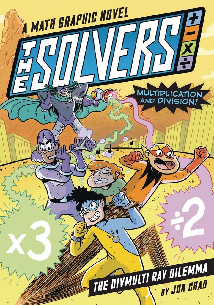In this graphic novel series, a crew of crime-fighting kid superheroes teach readers ages 8 and up foundational math skills, such as multiplication and division, as they battle their evil nemesis, Null Void. All math concepts are presented with fully illustrated step-by-step instructions and tons of superhero themed visual examples. When the evil Null Void steals the DivMulti Ray (a laser gun that can multiply or divide anything it touches!) the Solvers must learn all about multiplication and division to stop the supervillain in her tracks! Throughout the action-packed narrative, clear, step-by-step instructions and illustrated, superhero-themed examples present essential multiplication and division concepts in an easy-to-understand way.