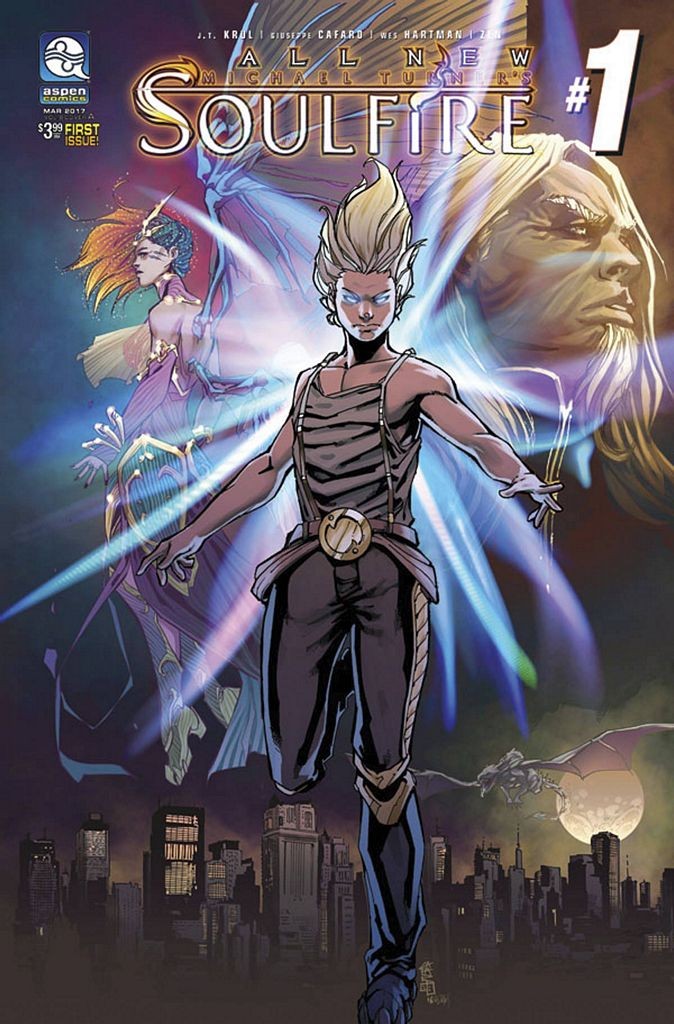 Aspen's premiere action-adventure fantasy epic returns in this all new jumping-on point for new readers! Following the events of ASPEN UNIVERSE: REVELATIONS, the world of SOULFIRE has a new status quo, as magic and technology have intertwined as never before! Meanwhile, Soulfire's Grace, Malikai and friends now must also discover that things are not as they seem in the year 2211-including new-and old-dangers that seek to eliminate them! Nearly fifteen of the best-selling series created by superstar artist, the late Michael Turner, have culminated in this brand-new SOULFIRE adventure by Aspen's talented creative team! Please join writer JT Krul, artist Giuseppe Cafaro, and colorist Wes Hartman as they bring readers back to the magic, myth, and everything you loved about SOULFIRE!
