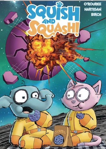 Squish and Squash are two young cadets trying to make it into the Intergalactic Search and Rescue Squad. In order to become rescuers, they must pass the difficult 'Save the Gimblemans' simulation test. It's not going to be easy, especially with tough Captain Twomey breathing down their necks. Breaking the rules and saving the crew from a burning galactic cruise ship lands our two cadets in trouble. The duo are given one last chance to pass the test or be thrown out of the academy for good. Our adventurous heroes must find new and imaginative ways to earn their patch and become bona fide rescuers! Squish & Squash is a cartoony sci-fi adventure story about friendship and courage, perfect for readers of all ages!