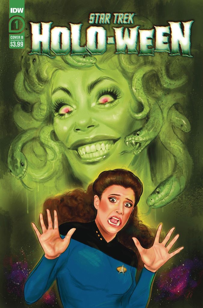 Acclaimed writer Chris Sequeira (Justice League Adventures and Sherlock Holmes: Dark Detective) and Eisner-nominated artist Joe Eisma (Morning Glories and Engineward) are bringing horror to the holodeck in a new four-issue miniseries in the month of October! After enduring an anxiety-ridden passage through a solar storm, Captain Picard and the crew of the U.S.S. Enterprise take to celebrating Halloween to reset the mood. But while the Earth holiday involves sweet treats and other festivities, they soon learn that fear is in season when crew members begin to go missing one by one.