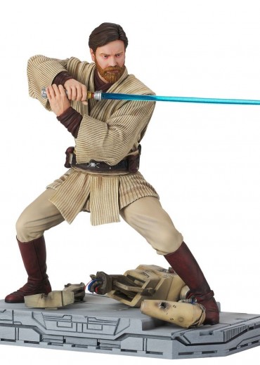 A Gentle Giant Ltd. release! Battle Droids beware! Obi-Wan Kenobi wields his lightsaber in defense of the Republic in this all-new 1/6 scale statue. Measuring approximately 12 inches tall, this Milestones sculpture features sliced-up battle droid parts on its base, and shows Obi-Wan striking a fighting stance. Limited to only 1,000 pieces, and featuring detailed sculpting and paint applications, it comes packaged in a full-color box with a numbered certificate of authenticity. Designed by Joe Allard and sculpted by Gentle Giant Ltd.!