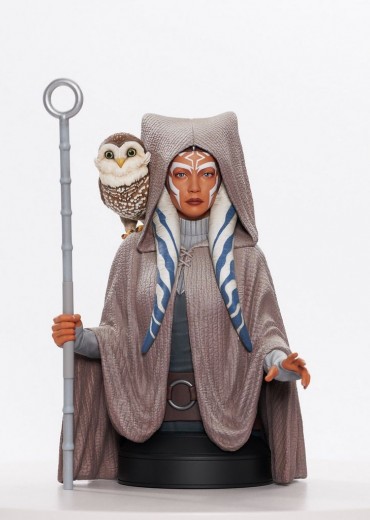 A Gentle Giant LTD release! The Togruta returns! As seen in Star Wars: Rebels, Ahsoka Tano appears, dressed in a white robe and holding a staff with her friend Morai on her shoulder. This 1/6 scale, approximately 6-inch resin mini-bust features detailed sculpting and paint applications, and is limited to only 3000 pieces. It comes packaged with a certificate of authenticity in a full-color box.