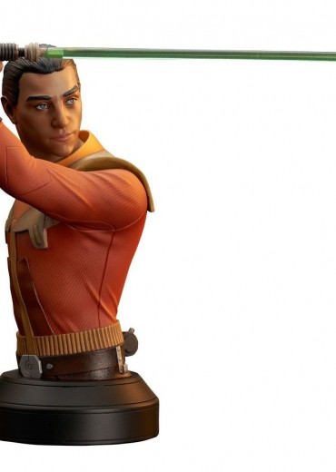 A Gentle Giant Ltd. release! The newest member of the Ghost crew, Jedi-in-training Ezra Bridger wields his green lightsaber in this newest mini-bust based on Star Wars: Rebels! Measuring approximately 6 inches tall, this 1/6 scale bust features detailed sculpting and paint applications and sits atop a pedestal base. Limited to only 2000 pieces, it comes packaged in a full-color box with a numbered certificate of authenticity.