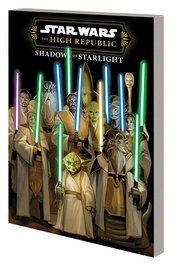 Who lived? Who died? Little has been revealed about the year following the fall of Starlight Beacon and the ultimate triumph of the Nihil - until now! The Jedi Council, reeling from its losses, has recalled its Jedi Knights from across the galaxy and instituted its emergency measures. Master Yoda has a plan to save both the Order and the galaxy, but he must touch the dark side to achieve it, and the consequences will be grave indeed. Jedi Knight Bell Zettifar, with his trusty charhound Ember at his side, will battle to rid the galaxy of the villainous Nihil. And fresh from his sweetest triumph, Marchion Ro - ruthless Eye of the Nihil - must face his greatest trials! Plus: What is the Stormwall, and what danger does it pose to the Republic? Collecting STAR WARS: THE HIGH REPUBLIC - SHADOWS OF STARLIGHT #1-4. Rated T