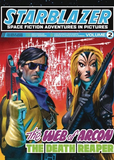 Interstellar Space Fiction Adventure in Pictures! This astronomical anthology collects two classic Starblazer issues from DC Thomson's extra-terrestrial archives: The Web of Arcon by Mike Knowles, illustrated by Carlos Pino and John Martin, and The Death Reaper by Grant Morrison, illustrated by Enrique Alcatena and Keith Robson. These two vintage issues from 1979 and 1984 have been blown up to full-graphic novel. Also included in this volume are an exclusive interview with legendary artist Carlos Pino (Commando, 2000 AD's Judge Dredd), cover gallery, and foreword by Doctor Who screenwriter and comic author Paul Cornell. The Web of Arcon - Reconnaissance ships patrolled the dark recesses of the Galaxy. As these ships were largely automatic, the crew spent long periods doing nothing. But on his first deep space trip, the newly commissioned Lieutenant Janus was about to encounter The Star Queen, a spaceship long thought lost and destroyed. Well, the truth about its fate was stranger - and more dangerous - than fiction! First published Starblazer #12, 1979. The Death Reaper - Mikal R. Kayn was a policeman. He was forcibly retired by the Republic of the United Worlds' Department of Justice, Star Cops, for methods to be found in no book… and a slight medical problem - he was all but blind. However, being medically blind didn't stop Kayn from becoming a Private Investigator, in fact, the Justice Department were delighted, because it got him off their backs. Well, almost… on March 23, 2284, Kayn's old partner, Affa, still a Galactic Policeman, was in the middle of an investigation and he needed Kayn's help! First published Starblazer #141, 1984. The volume is once again capped off with an interstellar cover by Neil Roberts (2000 AD, Warhammer, Commando).