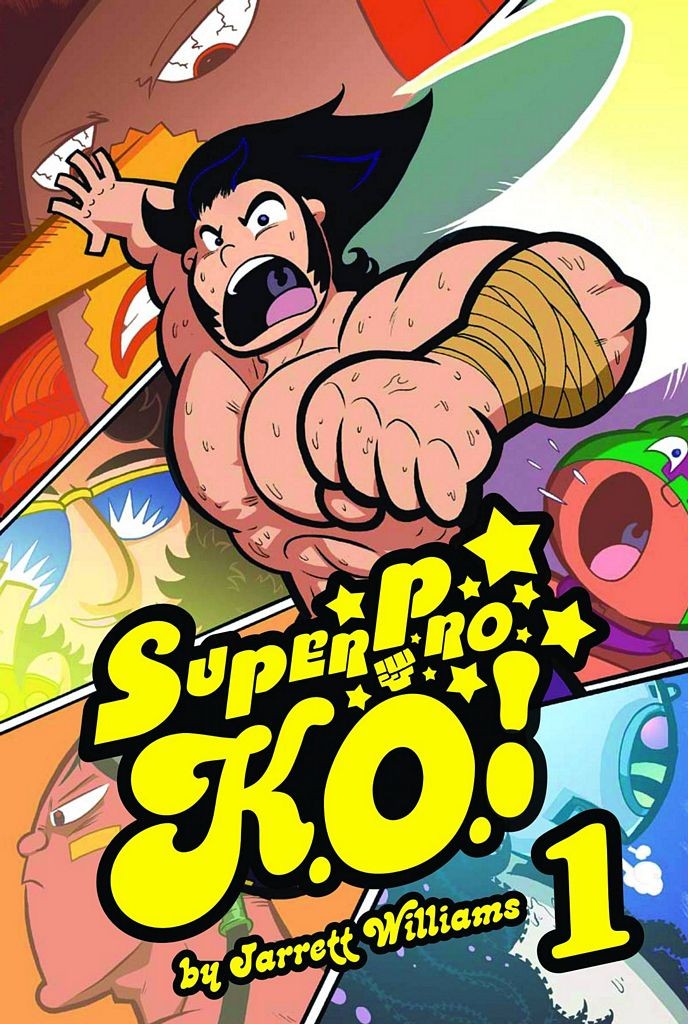 (W/A) Jarrett Williams Advance Solicitation for July. Joe Somiano is late to his first match in Super Pro K.O.!, and has no clue what awaits him in the rowdy ring! A seasoned sumo wrestler, a jolly luchador, a flambouyant tag team, suspicious executives, and a drunken Heavyweight Champion all stand between him and the superstardom that is his destiny. If the huge egos, clothesline take-downs, and broken chairs across the head don't squash Joe's dreams, he may just come out on top. But if he's going to take home the champion's belt, he'll need to bring his best moves against the likes of S.P.K.O.! stars Tomahawk Slamson, Yoko No-No, Mr. Awesomeness 2, and many more in this grand slamma jamma event of a graphic novel!