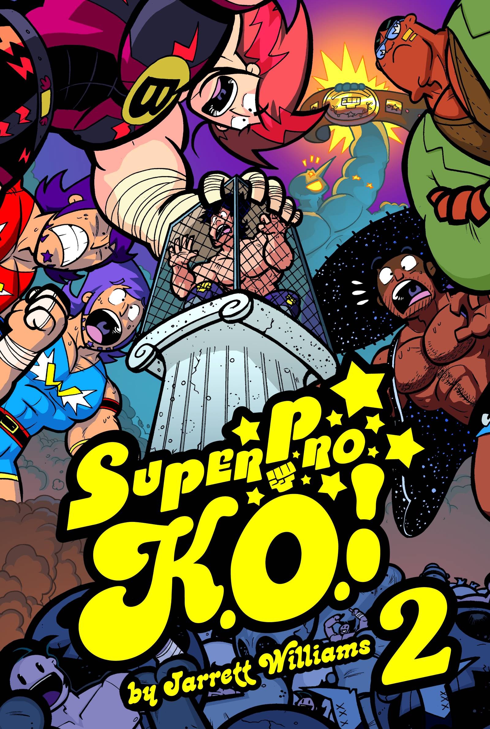 (W) Jarrett Williams (A) Jarrett Williams, Matt Razzano (C) Jarrett Williams IT'S TIME FOR THE MAIN EVENT! Be stupefied as King Crown Jr, Tomahawk Slamson, The Other, and the high-flying El Heroe face off under in the STEEL CAGE! But where's Joe Somiano?! Didn't he set the world on fire with his ferocious tenacity and heart?!?! Not really. He's backstage like a chump, trying to figure out how to win the SPKO fans over. WHAT A LOSER! But wait! Who is Romeo Colossus?! Does that ex-baseball superstar really think he can just waltz into Super Pro K.O. and be the ultimate wrestling champion?!? Not if Joe can help it! Find out who goes the distance in this second volume of the high-flying, kick dropping, pile driving, high-octane wrestling series, SUPER PRO K.O.!