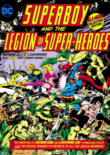 'This tabloid-size masterpiece reprints a classic Superboy and the Legion of Super-Heroes story at full size for the first time. Superboy arrives in the future for the wedding of Saturn Girl and Lightning Lad only to find a world totally different from the one he is used to visiting, but the Legionnaires insist it has always been that way. With Superboy unable to convince his teammates that something is wrong, the wedding proceeds as planned, only for the bride and groom to be kidnapped by the Lunarites. Convinced that the altering of history is the real issue, Superboy leads a team of Legionnaires back in time, while the rest of the group attempts to rescue the kidnapped couple. Can Superboy’s team correct the flow of time and save the future? Includes a two-page pinup of the entire Legion by Mike Grell and an eight-page feature containing information on each of the Legionnaires by Paul Levitz, illustrated by James Sherman and Jack Abel.'