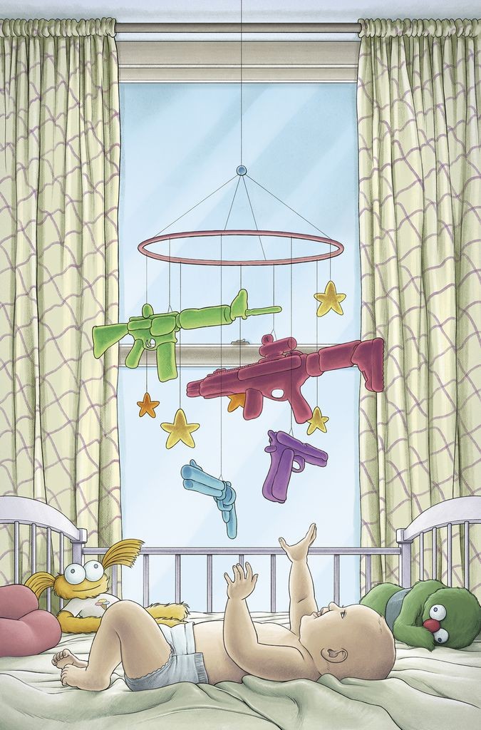 When the Weapons Retailers of America (WRA) declare 'THE RIGHT TO GUN OWNERSHIP BEGINS AT CONCEPTION' and take aim at arming babies, the A-B-C-team is drawn deep in the heart of Texas! Hey, kids-can you say 'OUTNUMBERED'? Plus: the tragedy of Herbert, a.k.a. Corporal Punishment. A candy coating of pop culture madness, humor, cartoonishly absurd hyper-violence, and just enough hope to keep holding on!