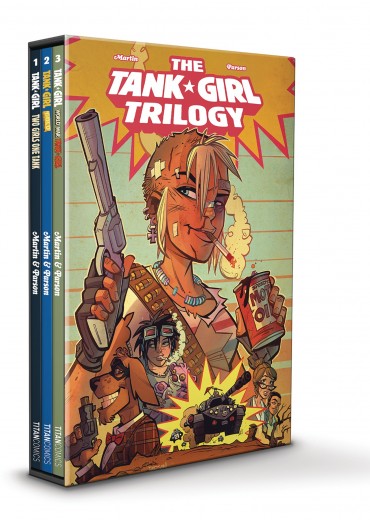 From Alan Martin and comic icon Brett Parson. A collection of hit graphic novels, and bonus exclusive art cards! Collecting Tank Girl: Gold, World War Tank Girl and Tank Girl: Two Girls, One Tank, this anthology boxed set is packed full of post-apocalyptic punk in the most typical Tank Girl way! Follow Tank's adventures through three exciting series as she goes through a whirlwind adventure looking for her signature tank, combating Nazis and getting into sci-fi antics.