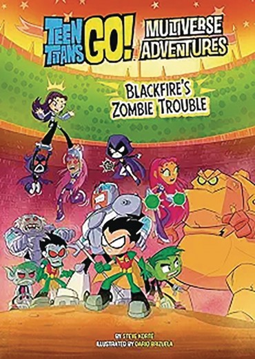 When Beast Boy uses Raven's spell book, he conjures a hole in the Multiverse that brings the Zombie Titans to town. If that wasn't bad enough, a terrifying text from Tamaran alerts Starfire that her evil sister is up to no good. It's a diabolical double whammy! Can the Teen Titans battle Blackfire and zombies at the same time? Or will they throw up their hands and become a brain buffet for their undead counterparts?