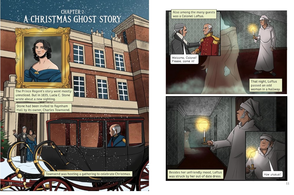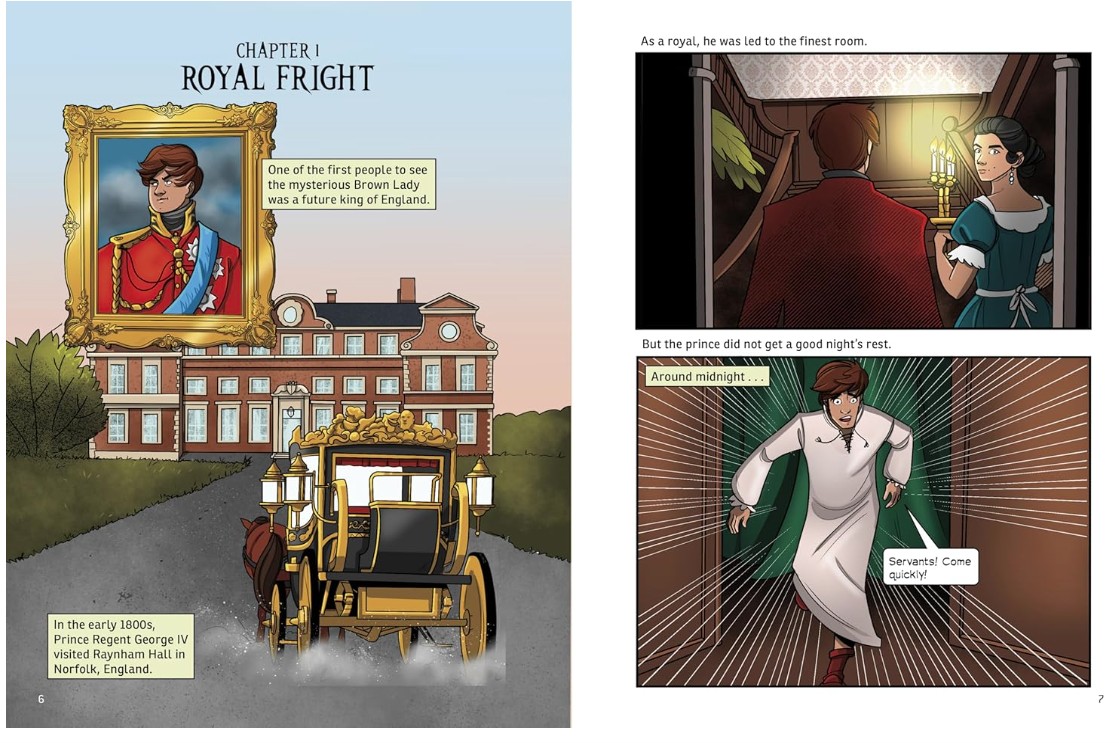 An eerie ghost is believed to haunt Raynham Hall in Norfolk, England. She is called the Brown Lady because she wears an old, brown dress and has a glowing face with empty eye sockets! For decades, tales of her sightings gripped all of England. But in 1936, a photograph claiming to have captured her standing on a staircase captivated the world. Who was the mysterious Brown Lady in life? And why is her tortured spirit doomed to roam Raynham Hall? Young readers will find out in this easy-to-read ghostly graphic novel that will send shivers down their spines!